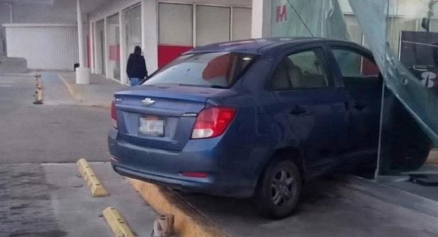 Mineral de la Reforma.- La mañana de este domingo 28 de diciembre, se registró un accidente vehicular en inmediaciones de Plaza Tulipanes, ubicada en el municipio Mineral de la Reforma. Un conductor que apenas aprendía a manejar perdió el control de un auto compacto y terminó impactándose contra parte de la estructura del cajero automático de Banorte, ubicado en dicho centro comercial.
