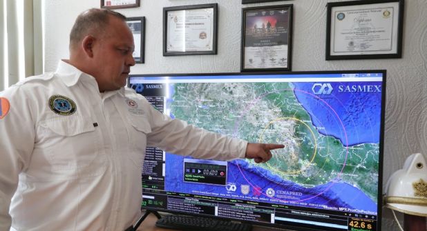 El director de Protección Civil, Enrique Padilla Hernández explicó que, en tiempo real, a través de una pantalla, se puede observar a nivel nacional las distintas variaciones sísmicas y repetidoras para recibir información en segundos de la transmisión de ondas S y P resultantes de los movimientos.