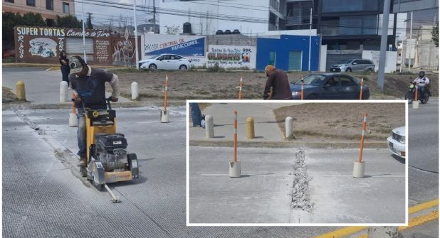 Por lo que para seguir dando espacios a los peatones se colocaron los topes y para ello se cortó el concreto para que el cemento pueda tener un anclaje y se hará un paso de 4.50 metros y el desnivel será de 20 centímetros, por lo que automovilistas deberán reducir su velocidad y dar prioridad a las personas.