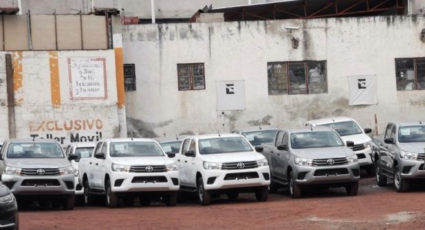 En total son 10 camionetas tipo pick up doble cabina, motor 2.7, dirección eléctrica, transmisión manual de cinco velocidades, capacidad de carga de mil 230 kilogramos, asiento para pasajeros de segunda fila, pantalla táctil de ocho pulgadas, aire acondicionado manual, bolsas de aire, equipo GPS y cada unidad deberá presentarse balizada con las características de la imagen institucional del municipio.