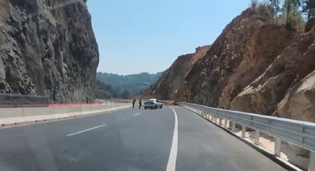 Al llegar a una zona de curva, notó que otros automóviles hacían un alto total y se echaban en reversa para dar vuelta sobre los mismos carriles y finalmente regresar por donde venían, ante lo cual conforme se acercó notó que piedras de gran tamaño y tierra había caído desde uno de los cerros contiguos.