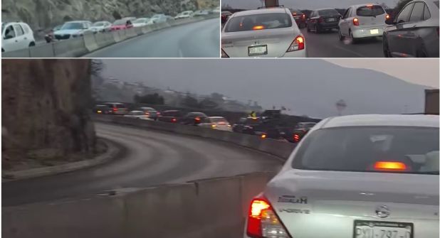 Lo anterior se aprecia principalmente en las vueltas de la carretera o en las curvas entre las montañas, pues se ve el problema del embotellamiento que se espera dure algunas horas y ante lo que se pidió aplazar el viaje o buscar rutas alternas; en contraste, para llegar a Real del Monte el paso está libre.