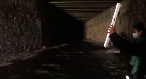 Tras unos metros de avanzar, llegaron hasta debajo del viaducto Nuevo Hidalgo que atraviesa parte del centro de la ciudad de Pachuca y en ese lapso la luz solar se quitó por completo, por lo que los jóvenes echaron mano de linternas con las que alumbraron el suelo y las paredes de roca que estaban sucias.