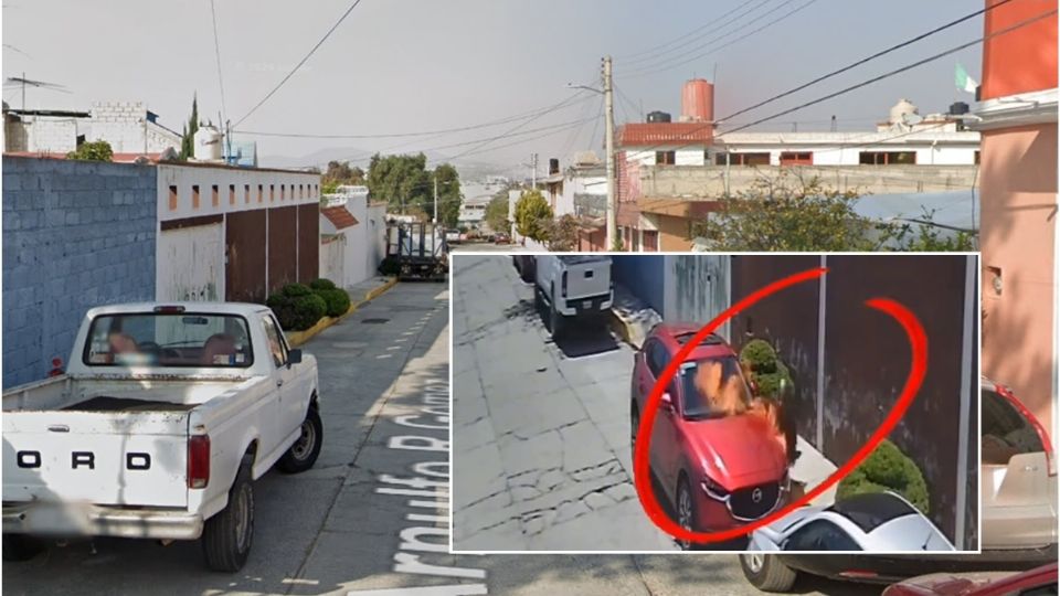 El individuo apareció caminando desde uno de los extremos de la calle Arnulfo R Gómez perteneciente a la colonia Adolfo López Mateos de la ciudad de Pachuca y se dirigió hasta donde se encontraba una camioneta Mazda tipo SUV en color vino, misma que estaba estacionada frente a una casa.