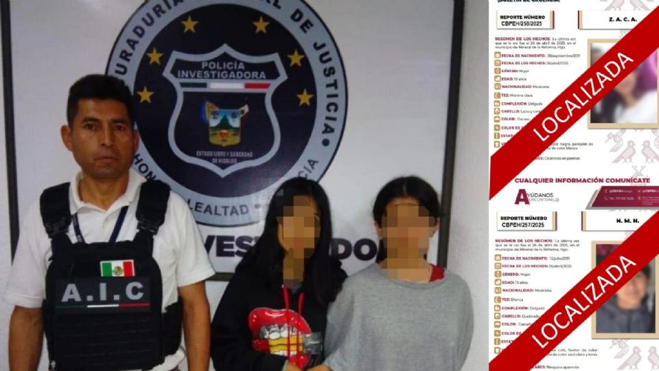 Su localización se dio esta madrugada, cuando elementos de la Procuraduría General de Justicia del Estado de Hidalgo (PGJEH), a través de la Subprocuraduría de Delitos de Género, Desaparición de Personas e Impacto Social, localizó a las adolescentes identificadas con las iniciales Z. A. C. A. y a N. M. H.