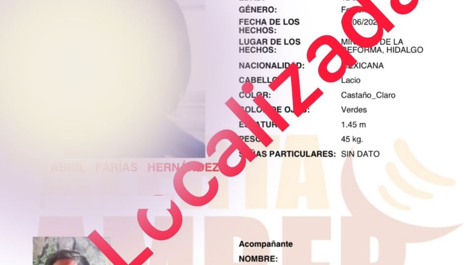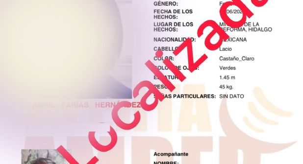 PACHUCA.- Tres días después de su desaparición, tras bloqueos, protestas y controversias, la menor de 12 años de edad, de nombre Abril, fue localizada sana y salvo en el estado de Puebla. Este sábado 7 de junio las autoridades confirmaron el hallazgo y desactivaron la ficha de búsqueda tanto para ella, como para Luis Alberto Burgos Mejía, de 16 años de edad, ambos desaparecidos desde el miércoles 4 de junio.