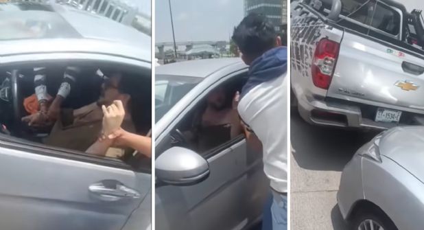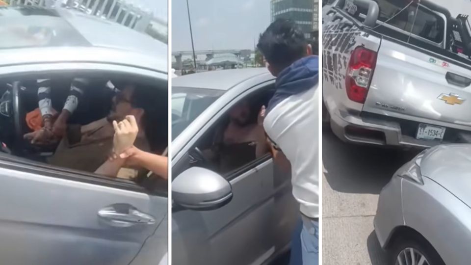 La grabación que dura 1 minuto con 30 segundos se observa a uno de los conductores al interior de su vehículo forcejeando con otros dos hombres que intentan bajarlo. La playera la trae desgarrada y entre los jalones se escucha la discusión en donde reclaman “tú te me metiste, es tu culpa”.