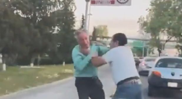 PACHUCA.- ¡Otra riña en Pachuca! Como se ha vuelto frecuente en las vialidades de la capital hidalguense, fue captado por los teléfonos móviles de los automovilistas una fuerte riña protagonizada por 2 hombres, uno de ellos un adulto mayor. El percance ocurrió sobre la México-Pachuca, en el tramo que pertenece al bulevar Felipe Ángeles, a la altura de la Procuraduría General de Justicia en el estado de Hidalgo.