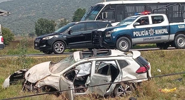 Los testigos refirieron que el vehículo transitaba sobre la carretera México-Pachuca, cuando el conductor perdió el control y terminaron volcados afuera de la cinta asfáltica, a la altura del tramo descendente del puente cercano a la planta industrial Dixy, en Tolcayuca.