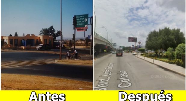 Al buscar el lugar descrito en la aplicación Google Maps, pareciera que no sería la misma parte, ya que luce completamente irreconocible, pues primero se fortaleció el bulevar Colosio con ayuda de puentes que sirven para los conductores evitar los semáforos abajo y así circular rápido.