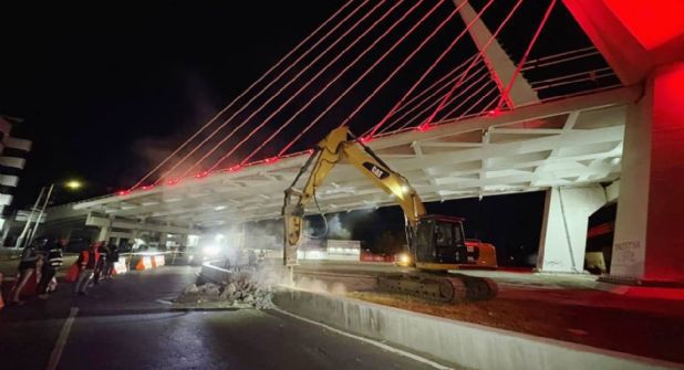 PACHUCA.- Cada noche de al menos la siguiente semana, la glorieta que rodea al Puente Atirantado de la ciudad de Pachuca permanecerá cerrada y ante ello se llamó a los conductores que la frecuentan a que tomen las debidas precauciones, en especial para que no sufran accidentes vehiculares.