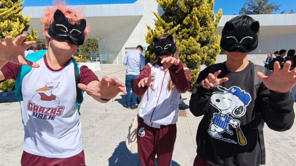 Los tres jóvenes arribaron al punto señalado portando antifaces de pantera negra; los estudiantes de la Preparatoria 1, de la Universidad Autónoma del Estado de Hidalgo, explicaron que el retraso se debió al transporte público, pero decidieron asistir luego de enterarse del evento en internet.