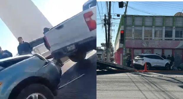 Pachuca.- El primer percance ocurrió sobre la avenida Plaza Juárez, en el cruce con la calle Iglesias, donde una camioneta y un vehículo particular colisionaron. De acuerdo con los reportes preliminares, uno de los conductores no habría respetado la luz roja del semáforo, lo que derivó en el impacto.