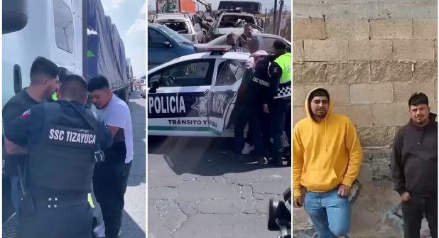 Fue en un punto de la carretera libre México-Pachuca, que los oficiales de Tizayuca pudieron detener primero a un chofer, con quien hubo forcejeo y en ese marco llegó otro transportista quien se sumó a la pelea para evitar el arresto, pero sin éxito, pues fueron subidos a patrullas y retenidas unidades.