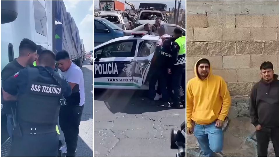 Una vez sometidos los choferes, que pilotaban tráileres de cabina blanca con remolque tipo plataforma y carga cubierta con lonas negras, fueron canalizados desde el lugar de los hechos hasta un juez cívico del municipio de Tizayuca, quien impuso una sanción administrativa, además del pago del corralón.