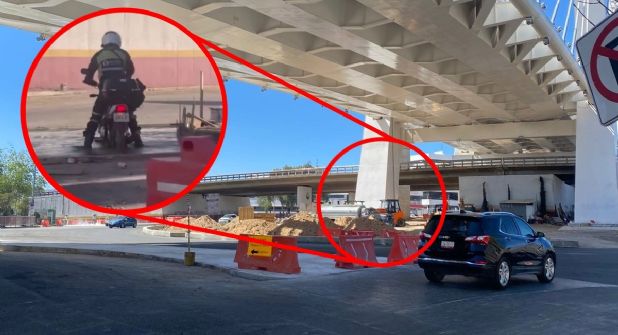 La escena del que ha sido catalogado como un peculiar accidente ocurrió recientemente, ya que las obras en el desnivel referido, que queda enmarcado en la glorieta conocida como 24 Horas, comenzaron desde el pasado viernes 27 de febrero y se suponía que iban a acabar durante este lunes 2 de marzo.