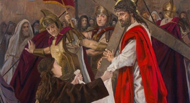 - Verónica limpia el rostro de Jesús.