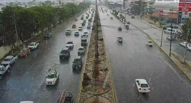 Aunque pese a una granizada pasada, la de este lunes 30 de marzo no fue tan fuerte ni mucho menos se reportaron afectaciones como vehículos detenidos u atascados, aunque sí fue aseverado que una vez que el hielo dejó de caer se registraba solamente agua en la superficie y un cielo muy nublado.