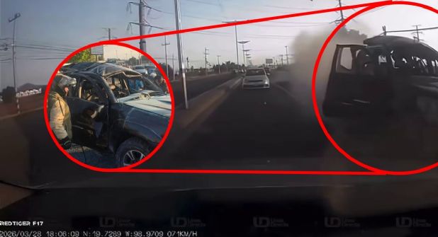 La cámara trasera de seguridad de un conductor que transitaba justo al lado del vehículo siniestrado aseveró que la detonación se suscitó aproximadamente a las 18:06 horas con seis segundos del pasado sábado 28 de marzo, aunque apenas fueron difundidas las imágenes, y fueron descritas como brutales.