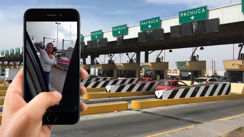 Incluso, la fémina sostiene una pieza automotriz redonda con la que destruye el espejo retrovisor derecho del automóvil donde iban los adultos y sus hijos; mientras que los hombres se van a la parte izquierda para arremeter igual con el uso de la violencia y ante la mirada de otros conductores de la México-Pachuca.