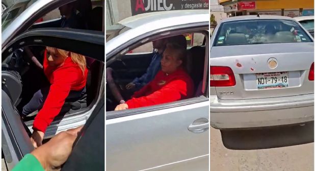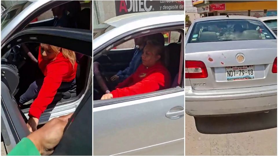 La fémina y el hombre abordaron su automóvil Volkswagen Polo con placas NDT-79-18, ante lo cual el trabajador que reclamaba la falta de pago trató de impedir que cerrara la puerta del conductor para que no se diera la huida, pero fracasó, pues quien iba al volante arrancó y salió de la gasolinera.