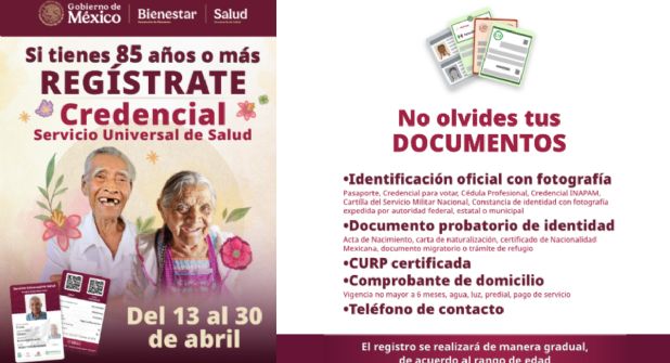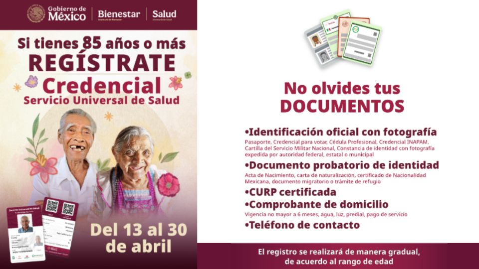A partir del 13 de abril y hasta el 30 de abril, se llevará a cabo el registro para obtener la credencial del Servicio Universal de Salud. Este trámite se realizará en los módulos de la Secretaría del Bienestar, en un horario de atención de 9:00 a 17:00 horas.