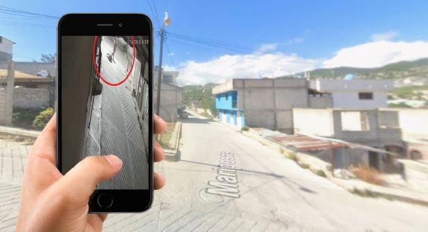 La cámara de seguridad de una casa que mira perpendicularmente hacia la calle Juan de la Barrera captó que a las 21:35 horas uno de los dos hombres agresores caminaba hacia la vivienda de su víctima portando un ladrillo, que lanzó y rebotó, lo que hizo que la recogiera, acompañado de otro varón.