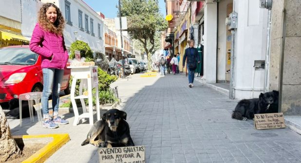Pachuca.— En la céntrica calle de Guerrero, de la capital hidalguense, resulta familiar encontrarse a tres o cuatro lomitos negros acostados en la acera, con un letrero enfrente que dice: “Vendo galletas para ayudar a los perritos de la calle”.