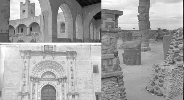 Asimismo, hay fotografías de los Atlantes de Tula, las ruinas de la época prehispánica antes de ser restaurados.