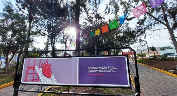 PACHUCA. - El parque de la colonia Morelos, localizado a menos de 10 minutos del centro de la ciudad, se ha convertido en un espacio para la exposición de arte, actualmente el lugar alberga la muestra: “Corazones en Juego”.