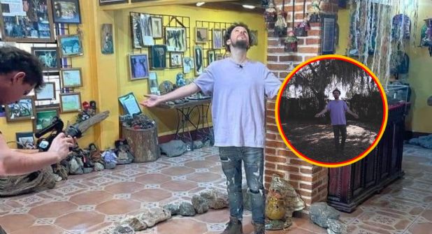 Siguió en el recinto, el cual cobra una entrada de 15 pesos que permiten disfrutar de tres salas con diversos artilugios místicos y figuritas, como algunos duendes mexicanos que están desnudos en contraste a los europeos; el recorrido siguió y el influencer se dijo sorprendido de cómo algunas personas toman a las criaturas como santos.