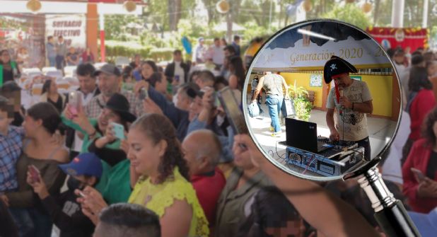 Luego de organizar los temas musicales que iban a sonar en la graduación de los alumnos de secundaria, Sonido Pirata y sus compañeros salió a la cancha que fue despejada de las sillas pata interactuar con todos e incluso bailó con algunos maestros, por lo que el ambiente de fiesta se vivió antes de que cada familia acudiera a sus respectivas celebraciones en Tula de Allende.