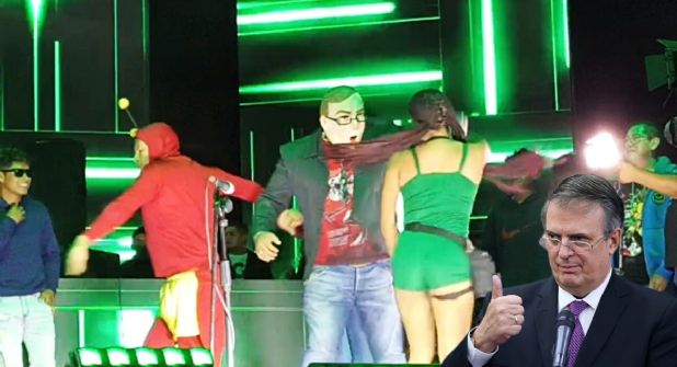 ACTOPAN.- Marcelo Ebrard, fue la sensación durante las actividades de la Feria de la Barbacoa en el municipio de Actopan, ya que hizo una repentina aparición en el escenario junto a los virales personajes de las redes sociales de Sonido Pirata, con quienes se lució al sacar los mejores pasos de baile ante un teatro del pueblo totalmente lleno; sin embargo, por supuesto que no se trató del real aspirante y corcholata morenista, sino de una botarga.