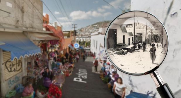 El fotógrafo se posicionó en la parte casi inferior de la calle Patoni, es decir, casi para llegar a la Plaza de la Constitución, a un costado del famoso mercado Primero de Mayo y del antiguo palacio de gobierno de Hidalgo que fue usado por los primeros gobernadores.