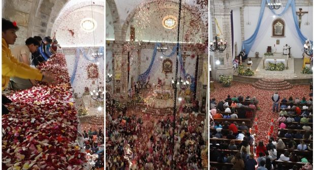 En punto de las 11:30 horas, la lluvia de pétalos dio inicio dentro de la parroquia, que albergaba a un aproximado de 1,000 personas que vivieron ese momento, mientras en el atrio y sus alrededores aún había más asistentes para tratar de ser parte de esa tradición en el pueblo mágico.