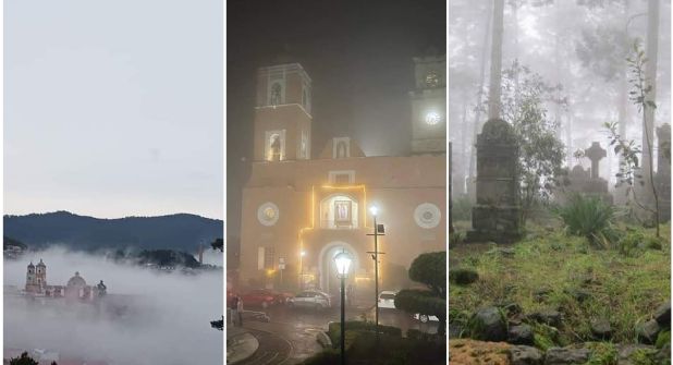 Aún queda una fotografía más y esta fue tomada desde lo alto, lo que captó al pueblo mágico cubierto con una tenue sábana que se alzaba por lo menos hasta la punta de un campanario, lo que se ha repetido desde hace varios días y el pronóstico del clima asentó seguirá conforme avance la temporada de lluvias.