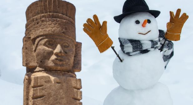 Conocedor de esta grandeza, Arturo, originario de la comunidad Pañhé en el municipio hidalguense Tecozautla, echó a volar su creatividad y aprovechó la basta nieve de esta época invernal en Springfield, Ohio, Estados Unidos donde actualmente radica, para recrear estos gigantes de Tula.