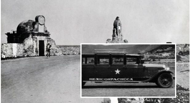 La fotografía histórica fue capturada en el año de 1930 y el fotógrafo se colocó en una parte de la carretera que da nombre a los dos destinos que conecta, México-Pachuca, y atrás se pudo apreciar que había muy pocas casas y estas todavía no llegaban a los cerros, además de que estaba una enorme barda.