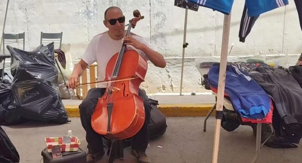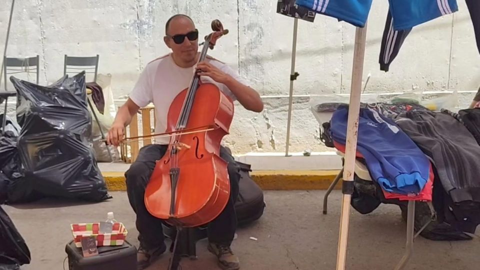 PACHUCA.- Pepe Cello, como le conocen, es un artista hidalguense que vive de hacer música y toca el violonchelo en el tianguis de San Alfonso, los sábados que no tiene eventos programados. Este tianguis ubicado dentro de la Zona Metropolitana de Pachuca no solamente ofrece frutas, verduras, bebidas, ropa y juguetes, también puedes encontrar arte para coleccionar, personalizar o simplemente sentir, como lo es la música.