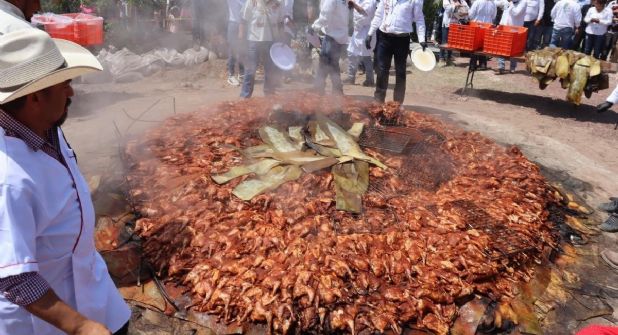 Actopan.— La comunidad de Dajiedhi, en el municipio de Actopan, volvió a hacer historia la tarde de este lunes al destapar, por segundo año consecutivo, el horno más grande de barbacoa y ximbo del mundo, en el marco de la feria patronal del Divino Salvador, con una asistencia superior a las 13 mil personas.