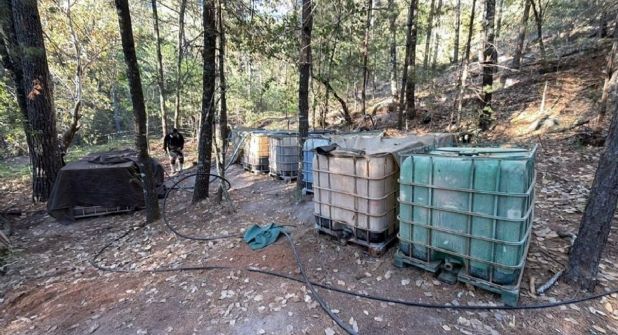 At a first camp and laboratory—an open area of approximately 850 square meters, divided into five sections—the following was found: