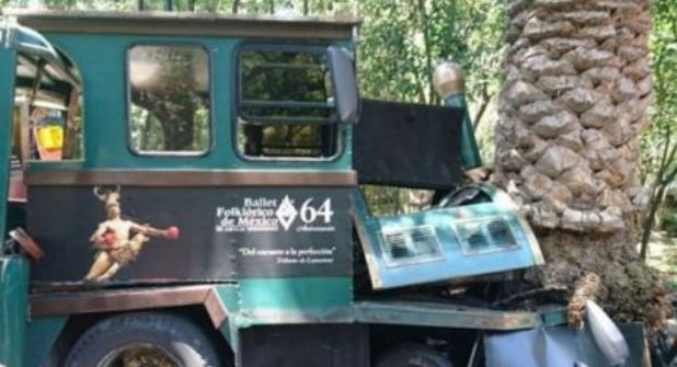 De acuerdo con diversos usuarios de redes sociales el vehículo se impactó contra la palmera ubicada en las inmediaciones del Castillo de Chapultepec cuando daba un recorrido.