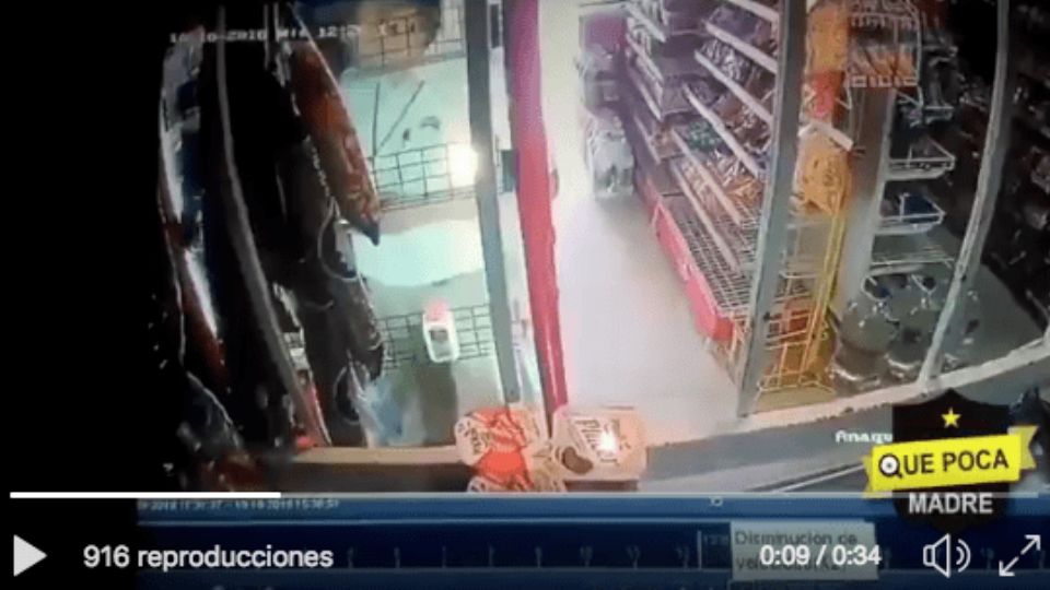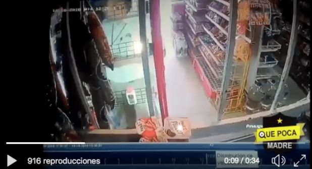 En la grabación se observa a el repartidor acomodar los productos en los mostradores, cuando de pronto, un individuo de playera roja se le acerca y lo amenaza con una arma de fuego para despojarlo de sus pertenencias.