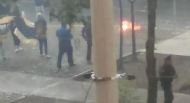El video del momento exacto de la agresión de porros fue difundido en redes sociales, en el cual se observa a los sujetos caminando sobre la avenida Lomas de Plateros en la colonia Merced Gómez, alcaldía Álvaro Obregón, mientras incendian objetos y detonan varios petardos.