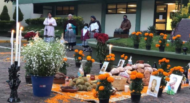 En la Facultad de Antropología de la UAEMex, la comunidad otomí decidió revivir la tradición, acomodaron el pan para que tomara forma de tumba, la última morada, como lo hacen en sus casas. Colocaron las fotografías de los profesores que se adelantaron en el camino, incluso de sus familiares. Cantaron “Las mañanitas”, montaron guardia. El día de Muertos es el recordatorio de nuestra identidad como mexicanos.