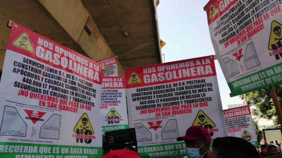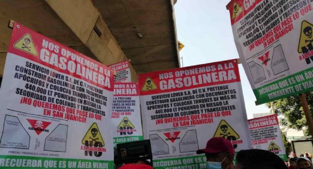 En la explanada exigieron la clausura definitiva de la construcción de la gasolinera de El Triángulo, argumentando que se trata de un predio que la empresa Servicio Llover S.A de C.V. adquirió con documentos apócrifos.