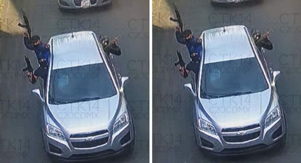 Y es que en las imágenes se observa a por lo menos cuatro personas portando armas de alto calibre. Todos ellos, a bordo de una camioneta gris sin placas.
