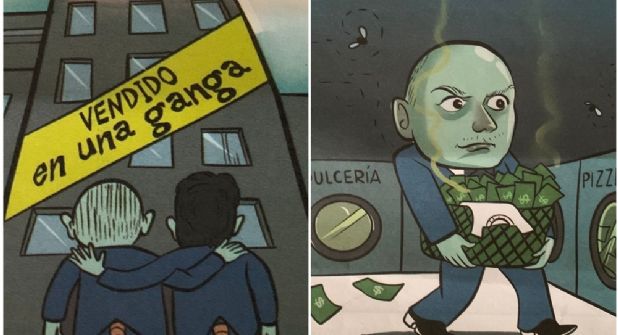 En la historieta se incluye a Nicias "N", ex director generak de Obras y Desarrollo Urbano, quien fue detenido hace una semana por la Fiscalía capitalina y que recibió el beneficio de llevar el proceso legal en prisión domiciliaria.