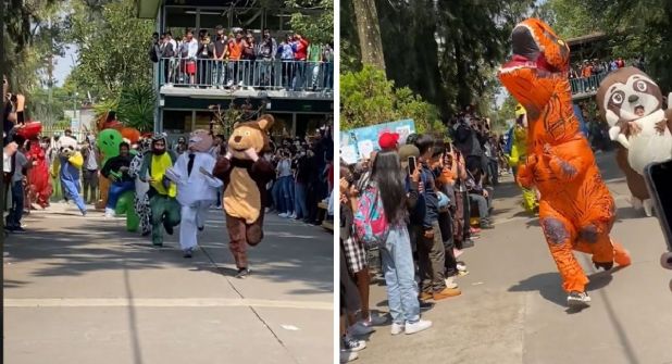 Mediante un video de TikTok se difundió una grabación que muestra uno de los momentos más divertidos de la temporada de Día de Muertos y Halloween: la carrera de botargas en CCH Oriente.