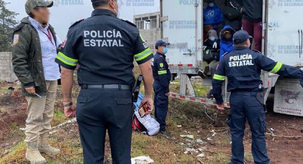 Elementos de la Secretaría de Seguridad del Estado de México rescataron a 43 migrantes que presuntamente serían trasladados en un contenedor de un tráiler desde el municipio de Soyaniquilpan, en esta entidad.